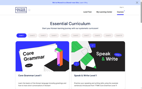 網站為英文版介面,收錄豐富的韓文學習資源,從文法到會話的教學都有,也提供給韓文初學者到韓文中高級學習者的韓文學習課程。