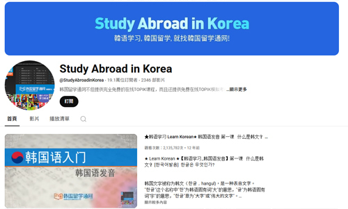Study Abroad in Korea是免費的學習資源,一個用中文教韓文的頻道,影片數量多,從發音到基礎韓語、高級韓語的學習影片都有,還有韓文的慣用語使用與小故事,幫助大家更進階且生活化地學習韓文。
